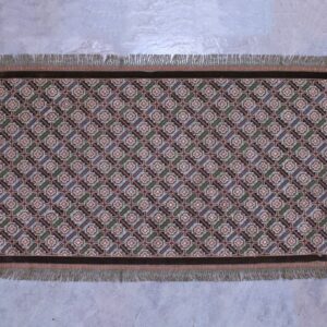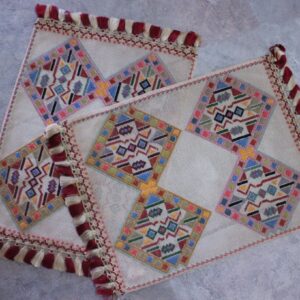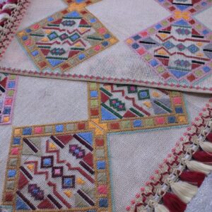 The difficulty of this type of embroidery is very high, as threads are removed and their cut edges are embroidered to create these squares, giving the appearance of lace (drawn thread work). This type of work is called “Lefkaditiko”.