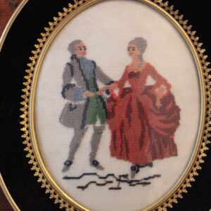 This is one of only two works by the artist in which the design was on stamped canvas (pre-printed canvas).