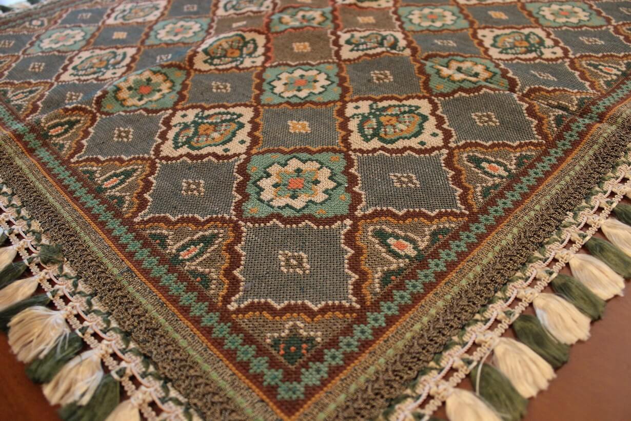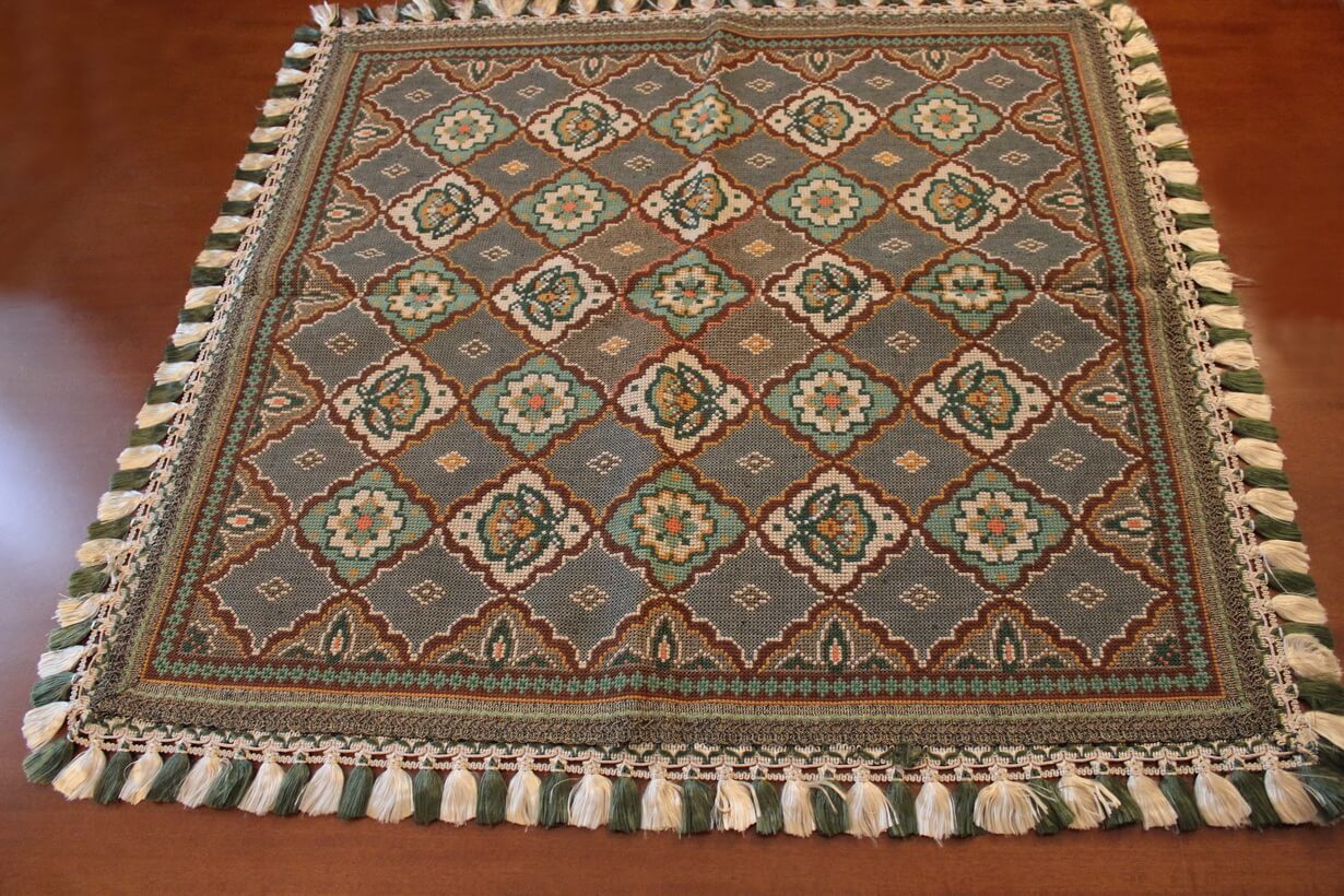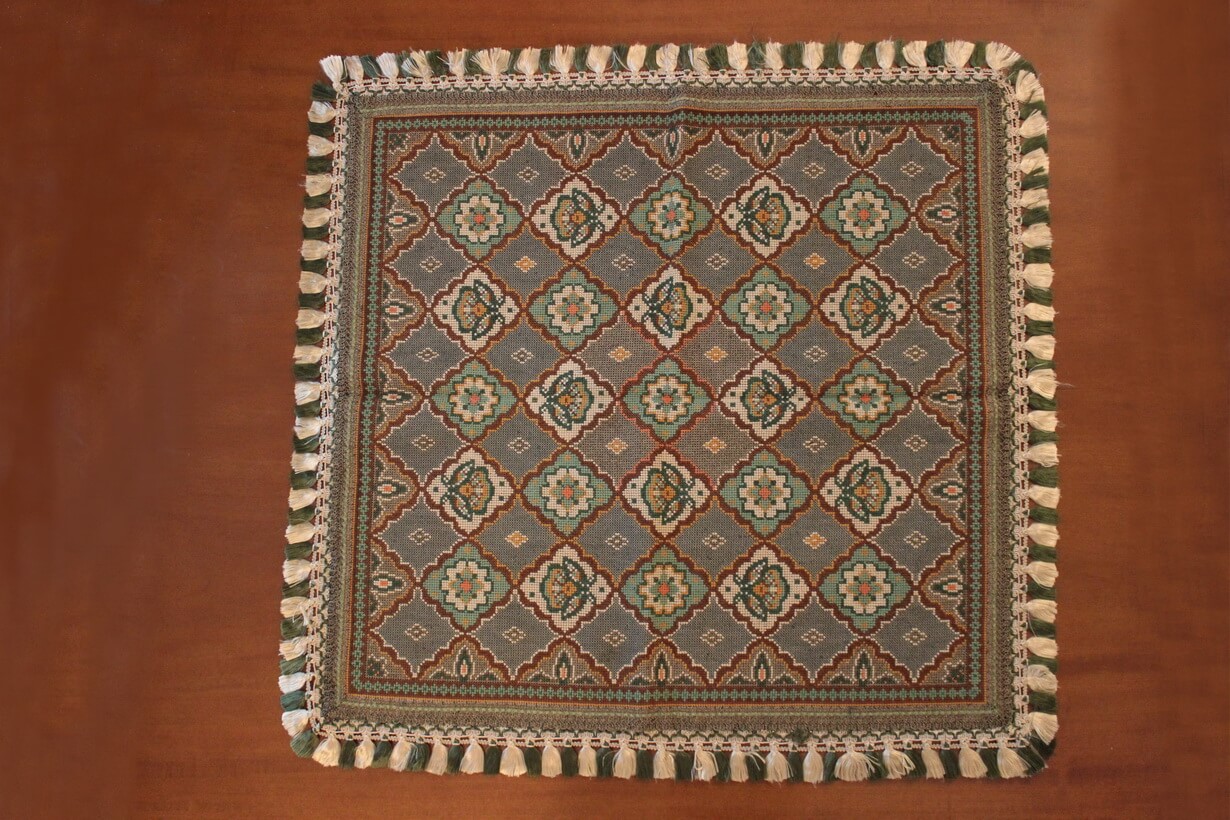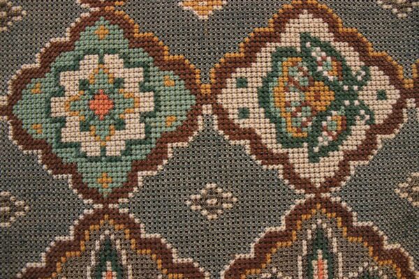 The canvas is thick. The design motif was sourced from a magazine combined with personal composition. The choice of colors was entirely personal.