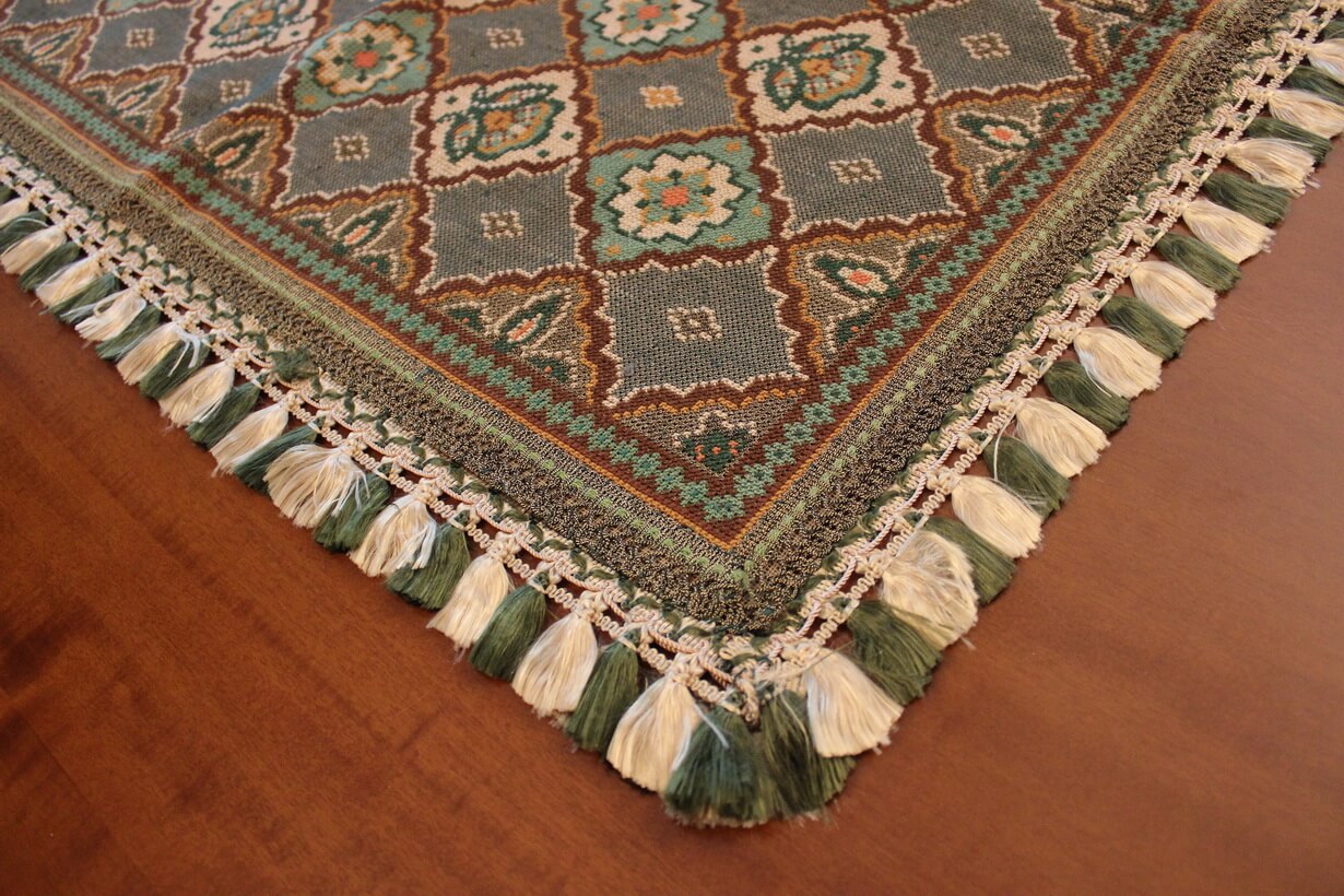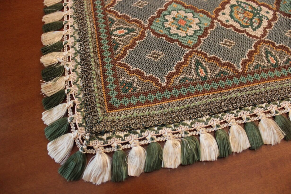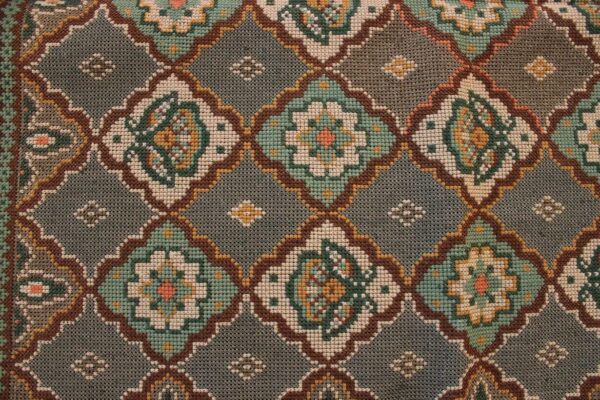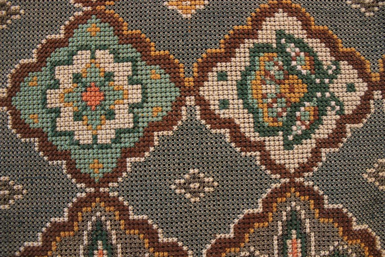 The canvas is thick. The design motif was sourced from a magazine combined with personal composition. The choice of colors was entirely personal.