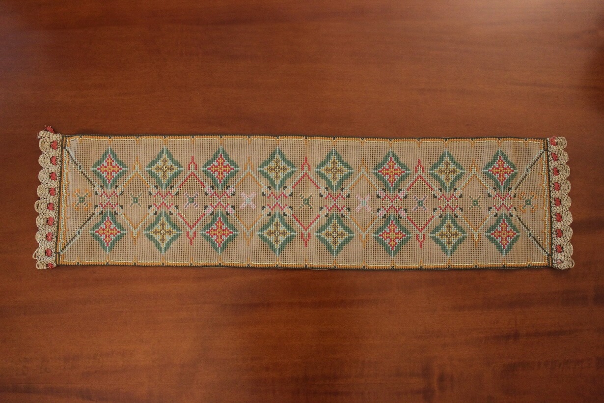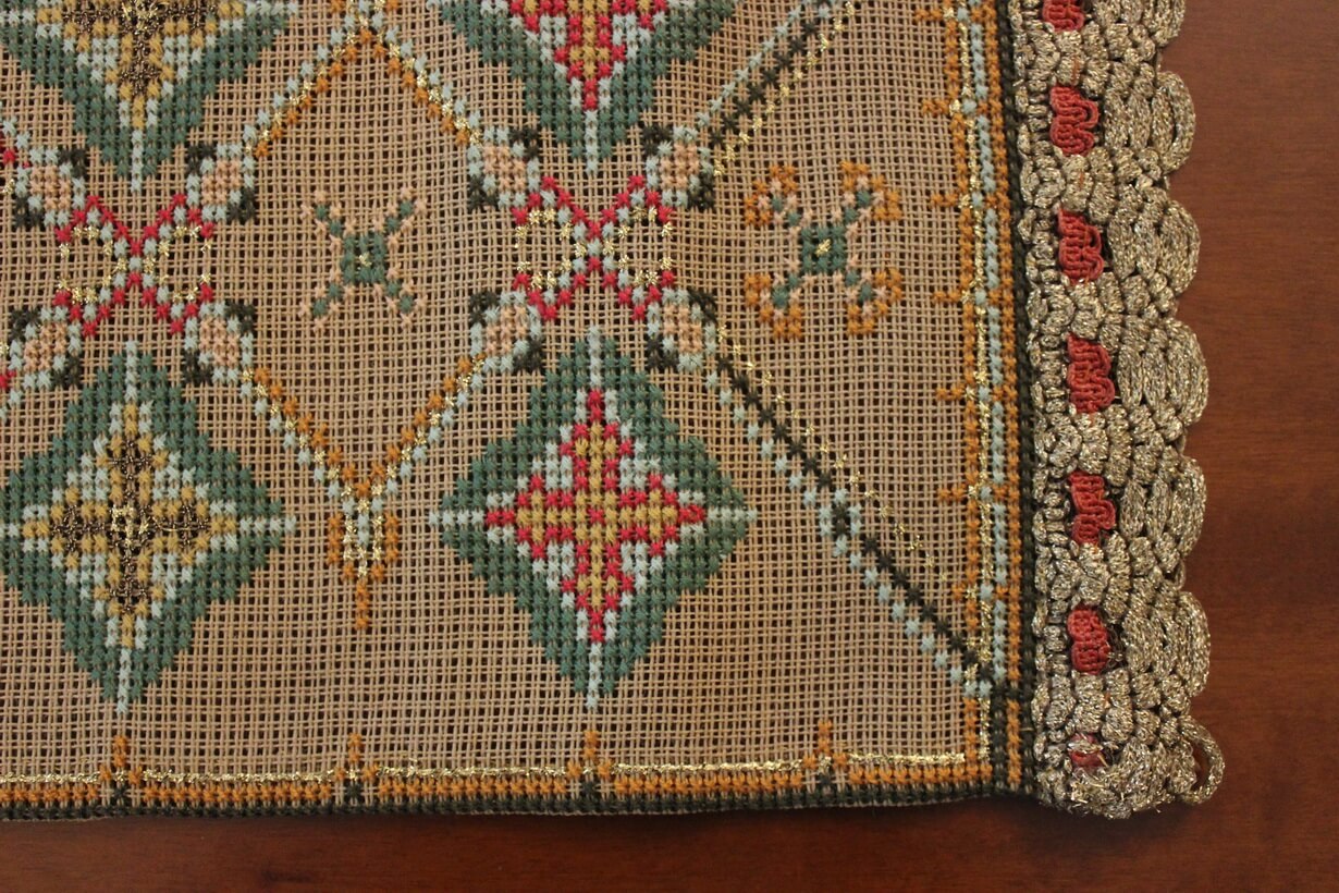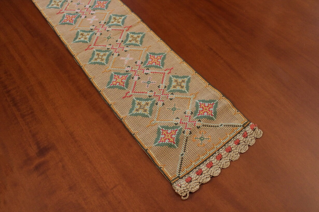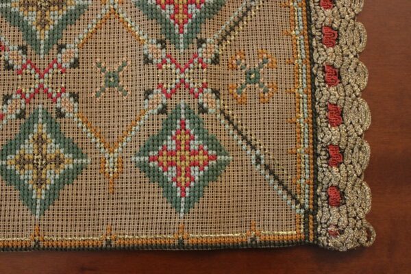 The canvas is thick. This is a completely improvised work, based on personal imagination and creativity. It used only leftover threads as well as leftover canvas remaining from a previous project (stash busting).