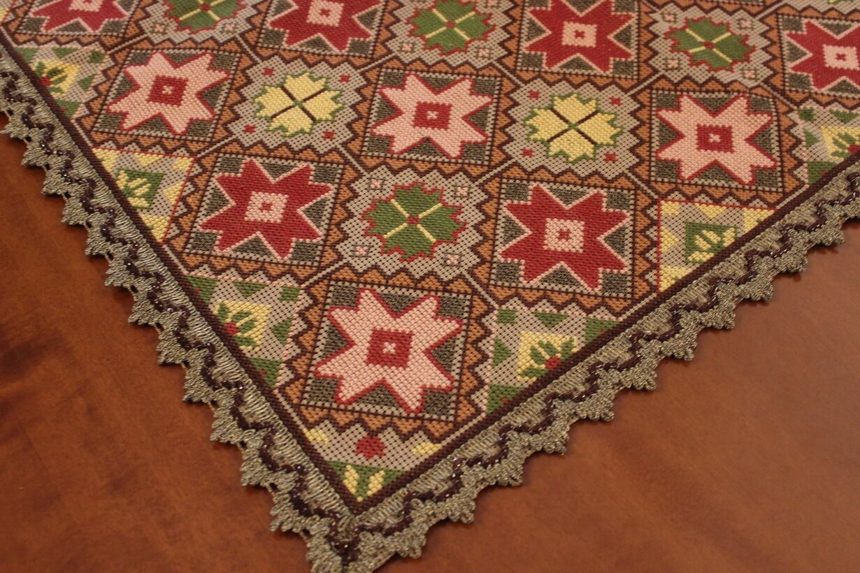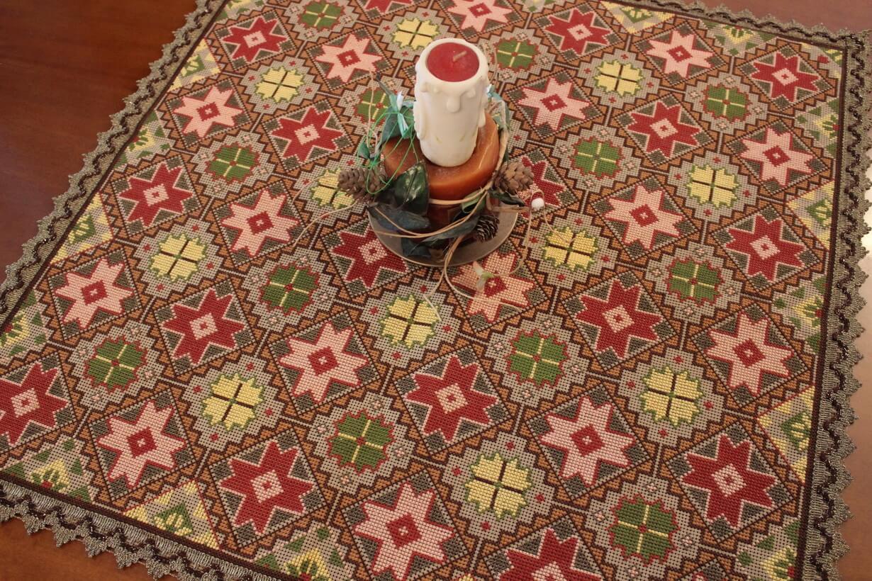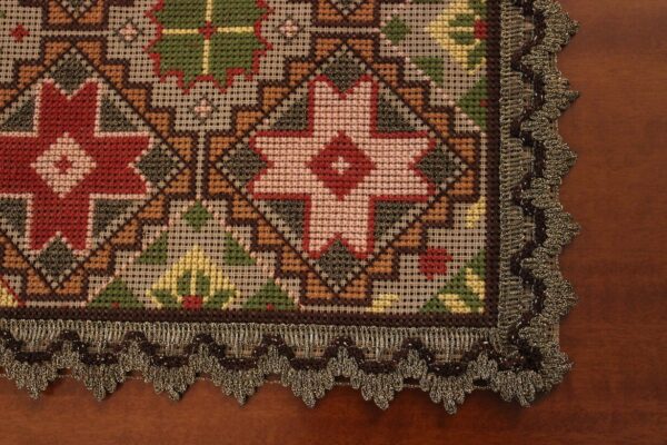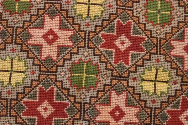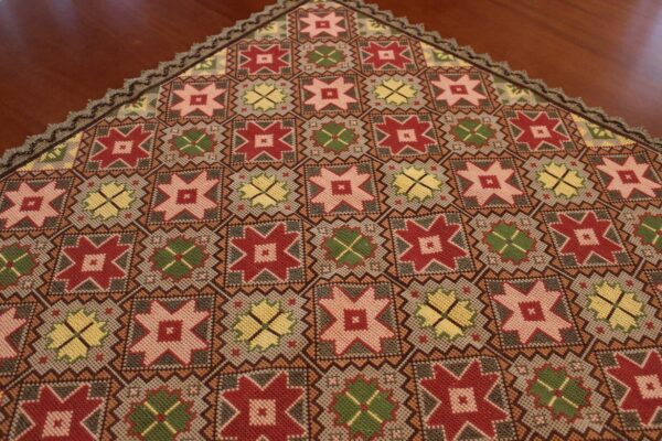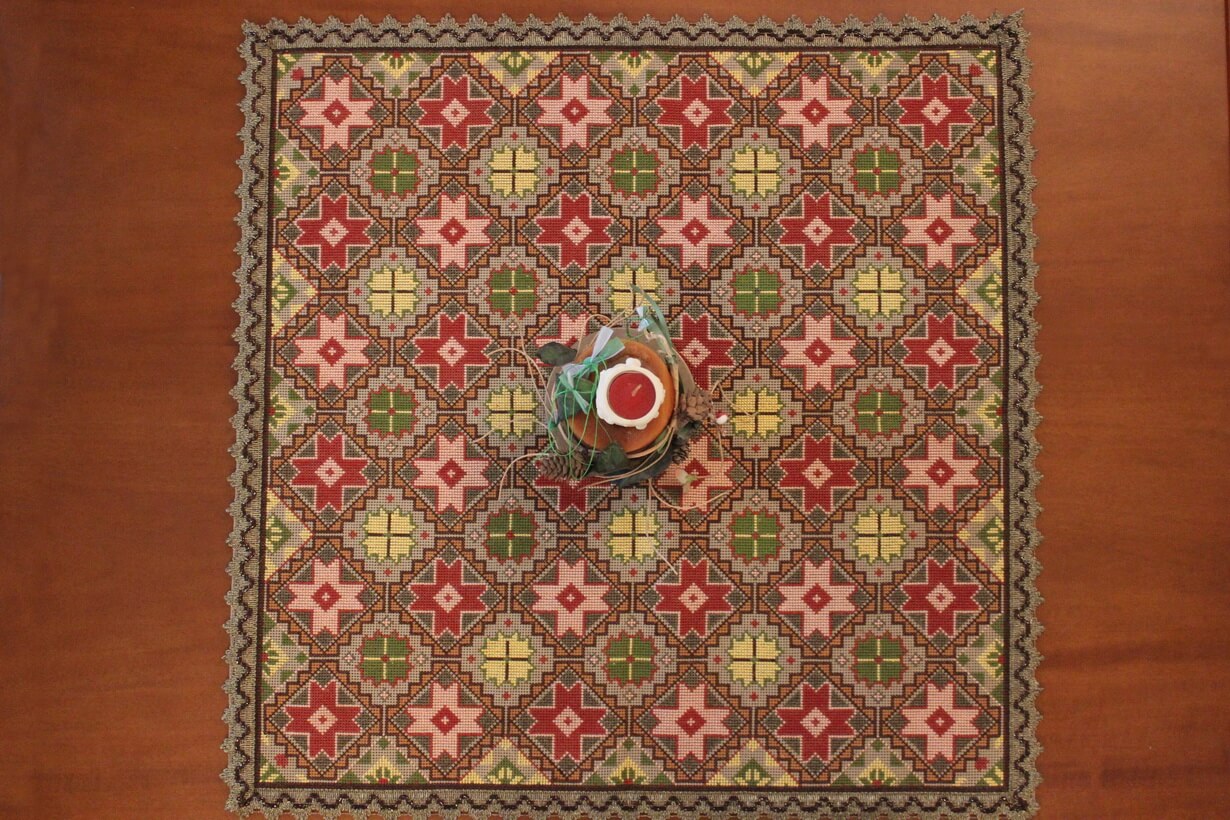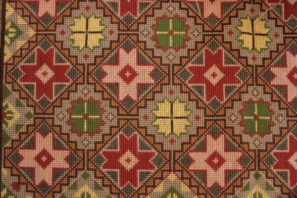 The motif of this piece is a reproduction of the design from Work No.17. It represents a transfer of the design from the etamine of Work No.17 onto thick canvas (Work No.18).