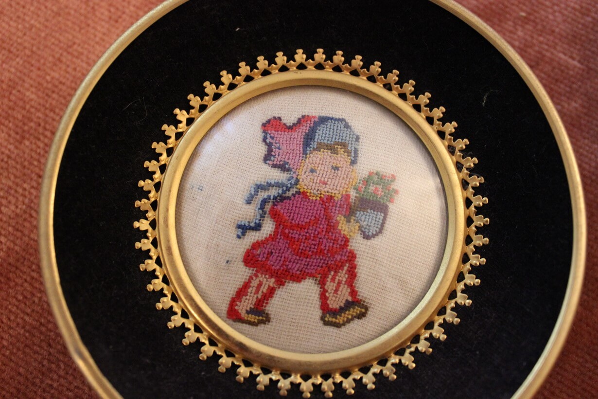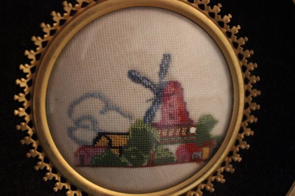 The “Child with Flowers” and “The Dutch Windmill” constitute the artist’s first Gobelin works. They were created at a young age (14 years old), during a handicrafts class in the first year of secondary school (Gymnasium), in 1961, in Nafplio, Greece.