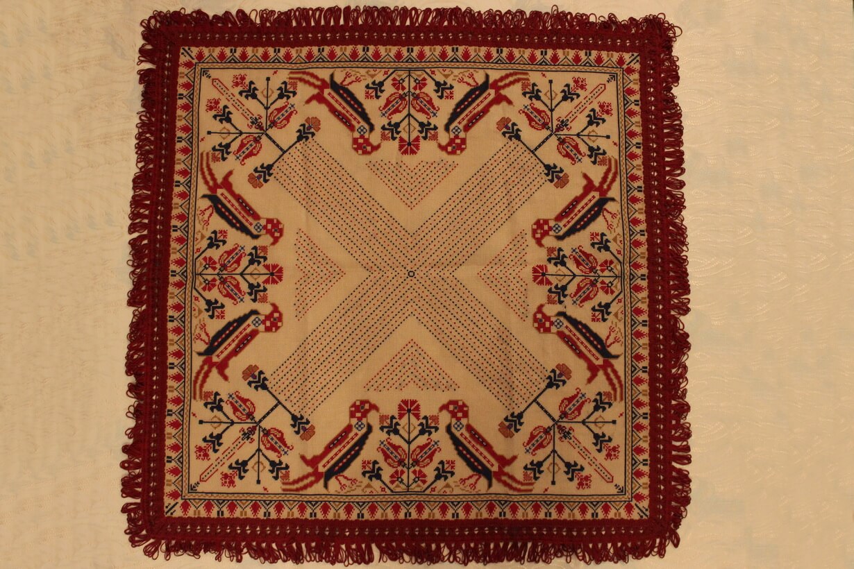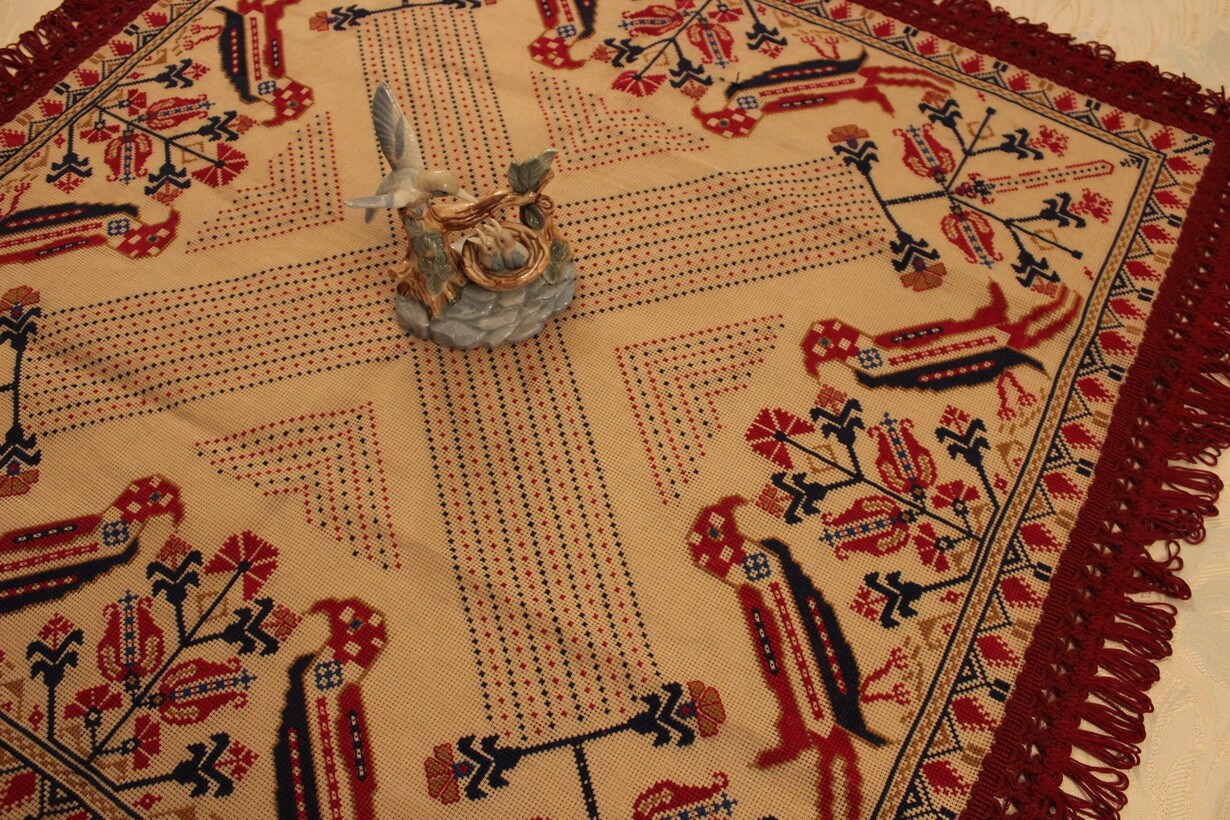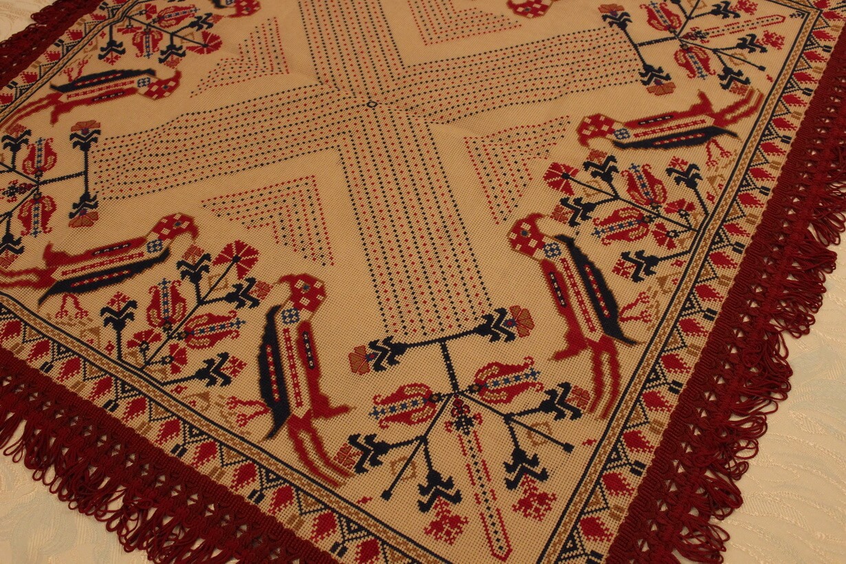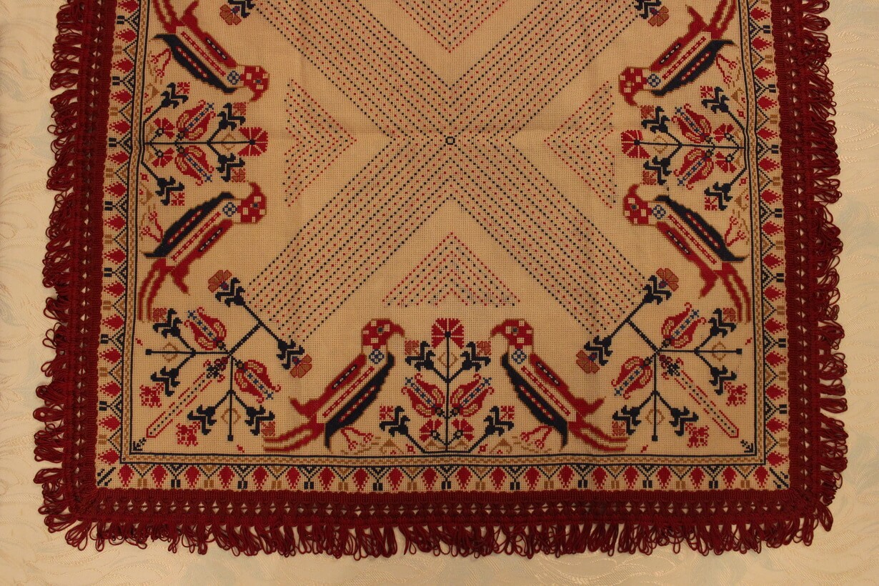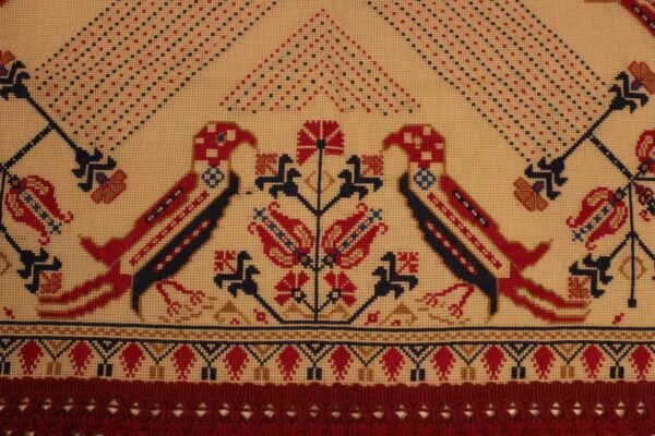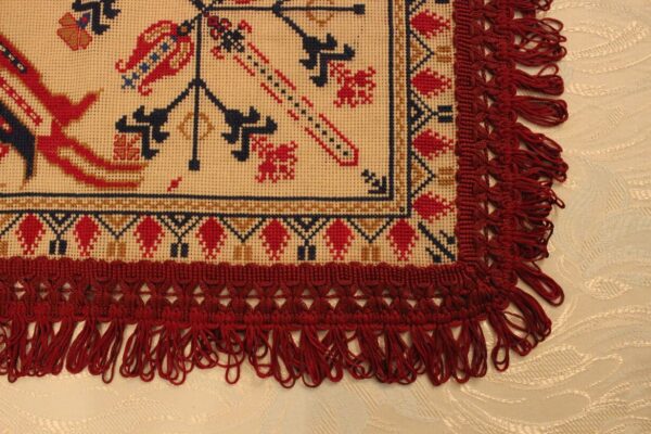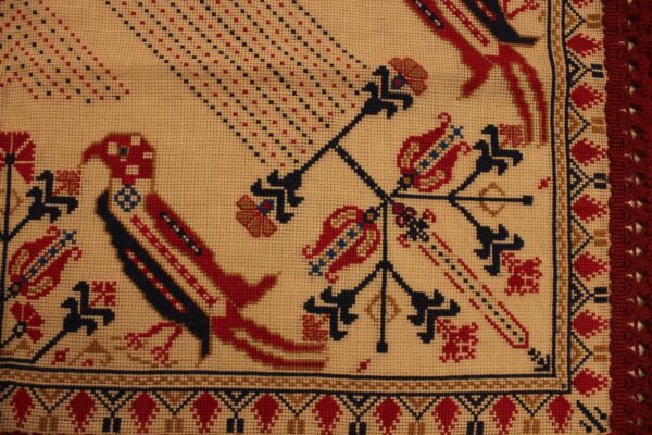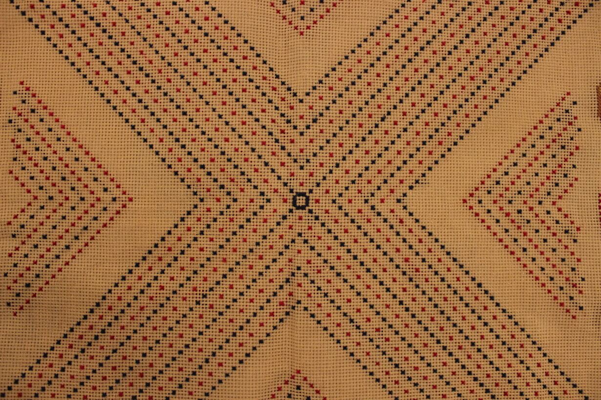 The canvas is thick. The design is the result of 100% improvisation and composition. Cross-stitch was used. The choice of colors was personal.