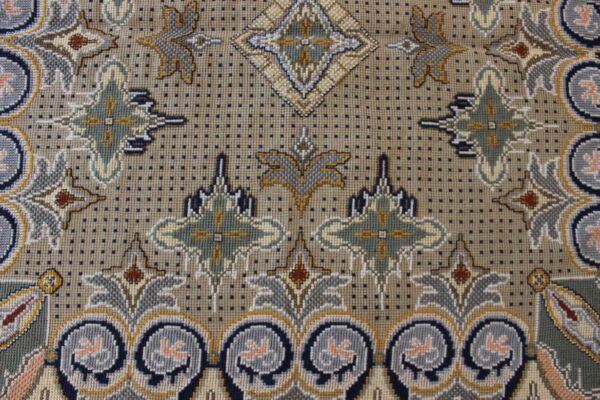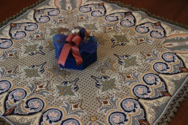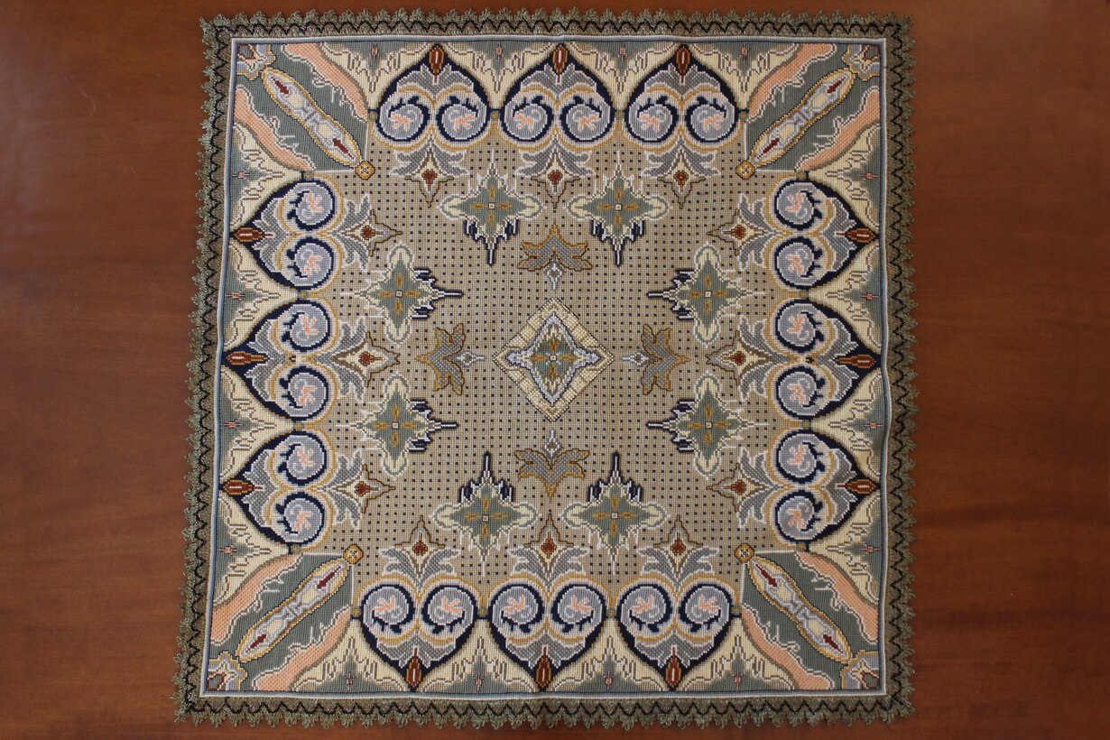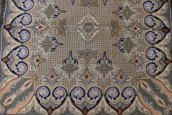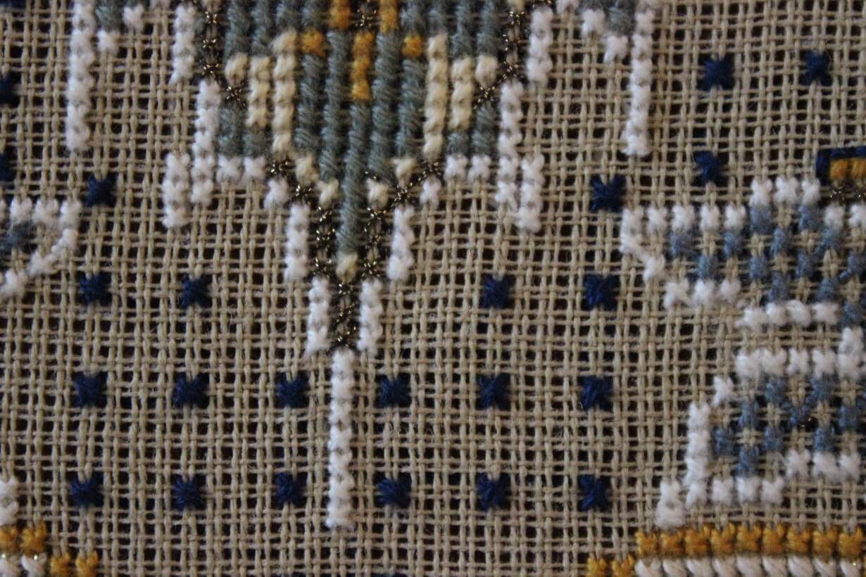The canvas is thick. The design is the result of 100% improvisation and composition. Cross-stitch was used. The choice of colors was personal.