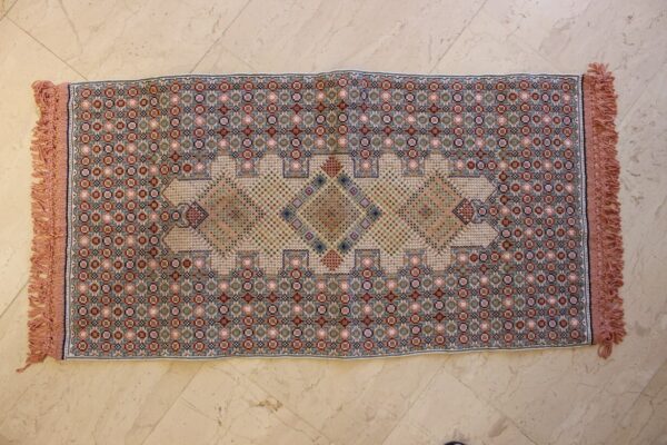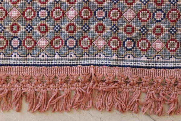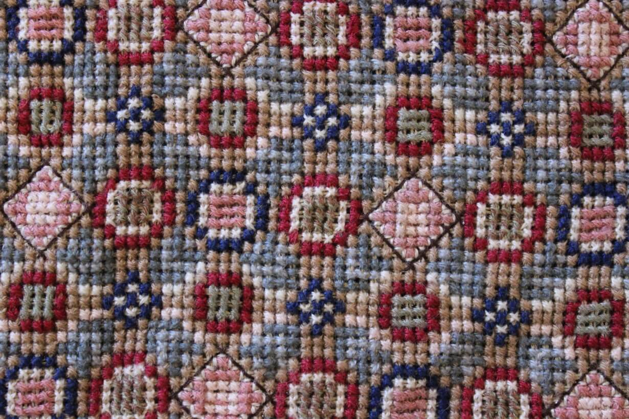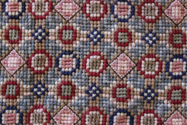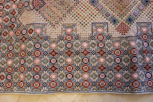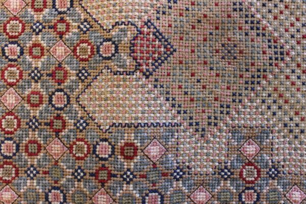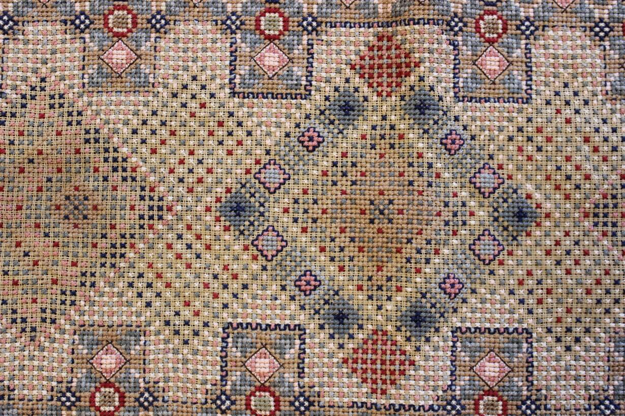 The canvas is fine. The design is the result of 100% improvisation and composition. Cross-stitch was used. The choice of colors was personal.