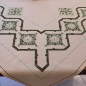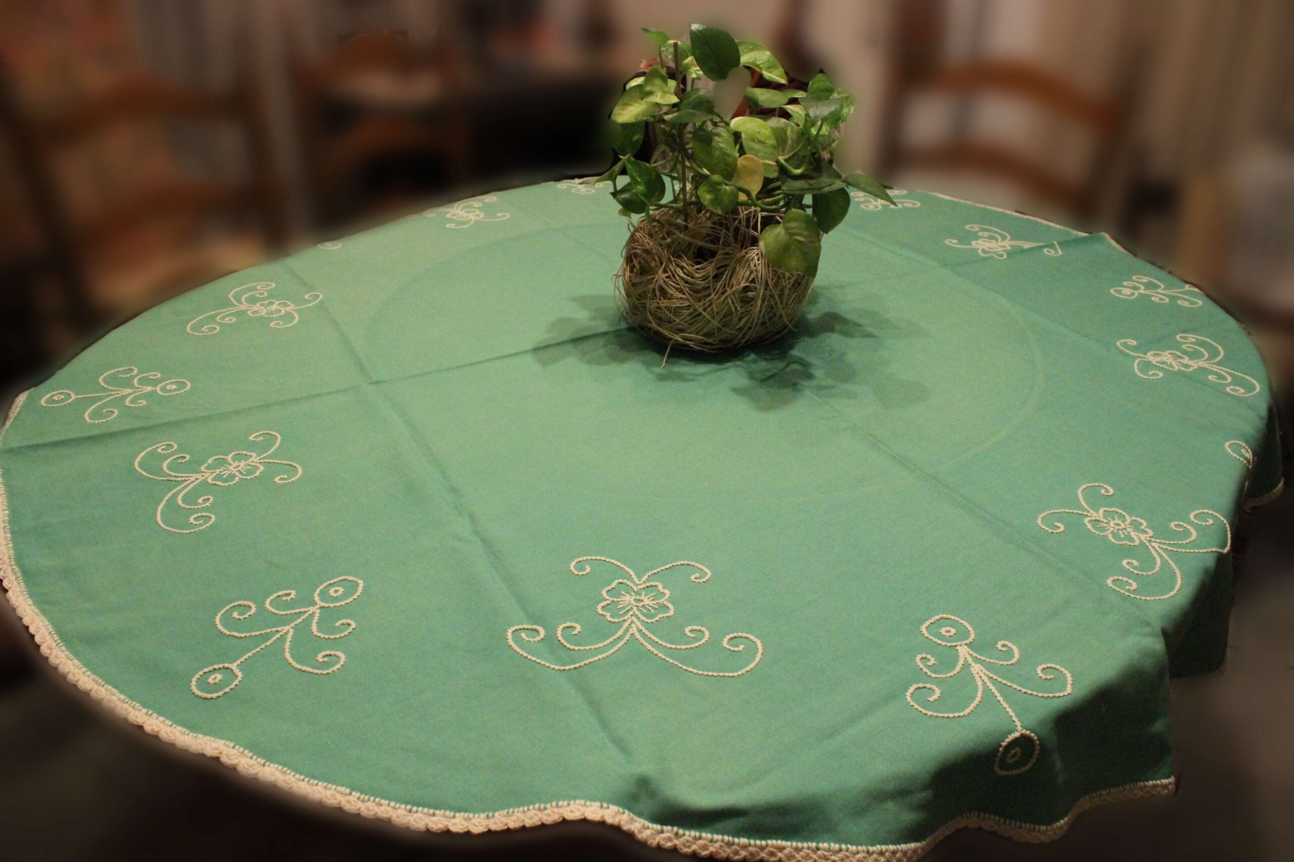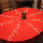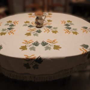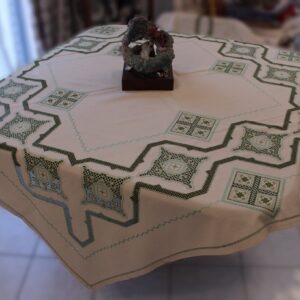 This piece is used as a tablecloth and it has a diameter of 130cm.