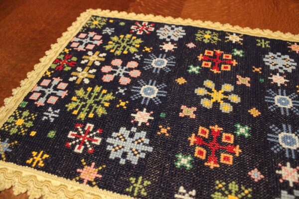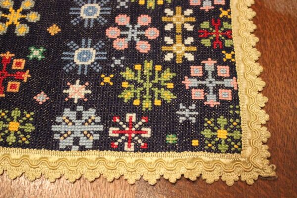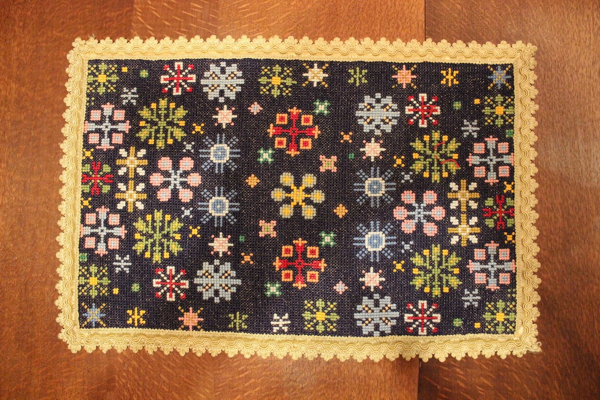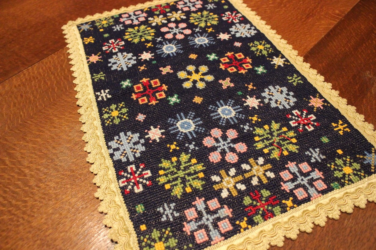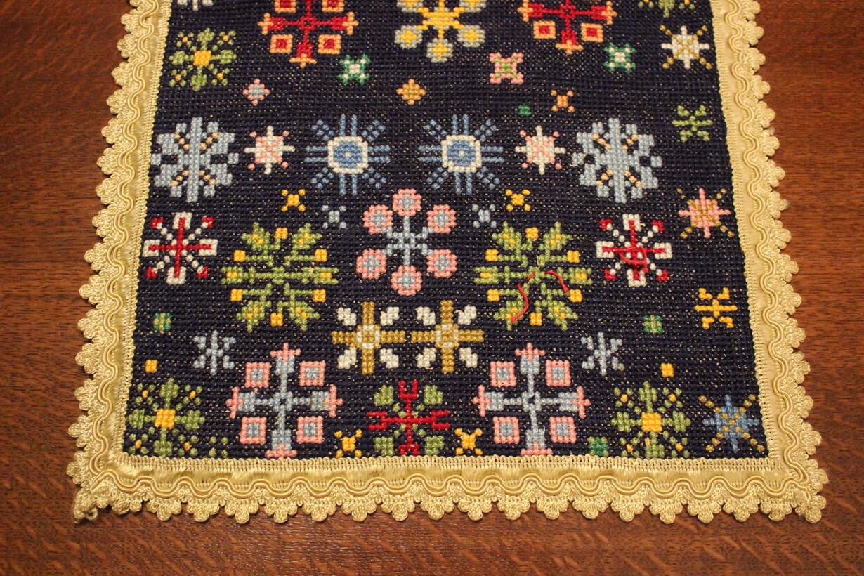 Cross-stitch was used, using leftover threads.