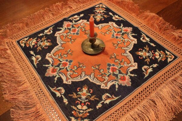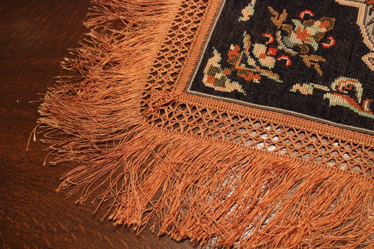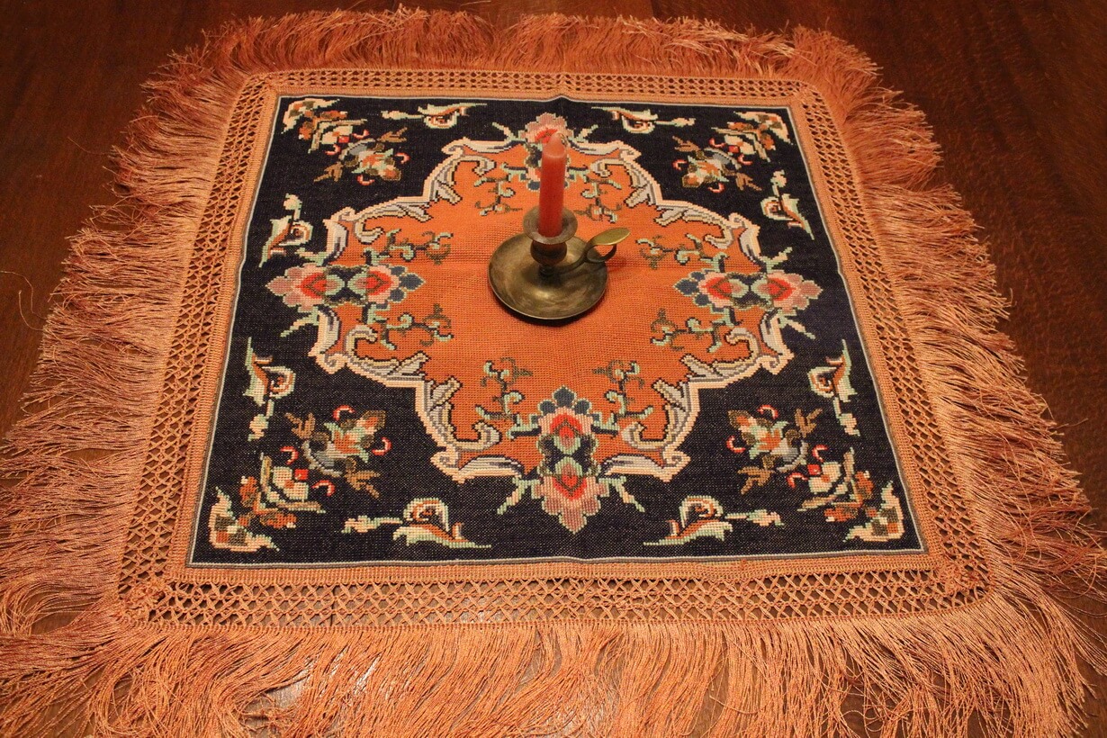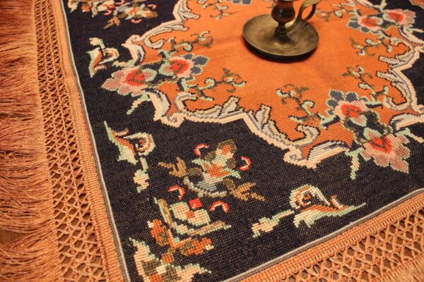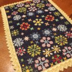 Cross-stitch was used, using leftover threads. The canvas is medium.