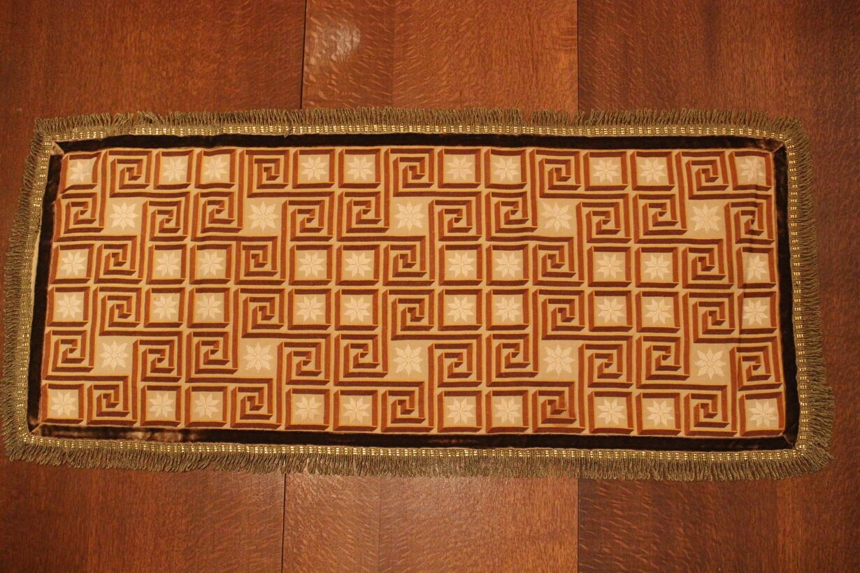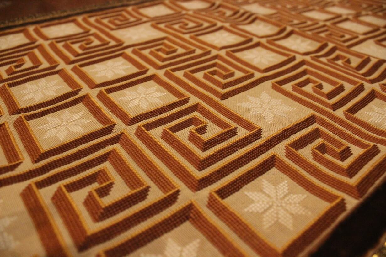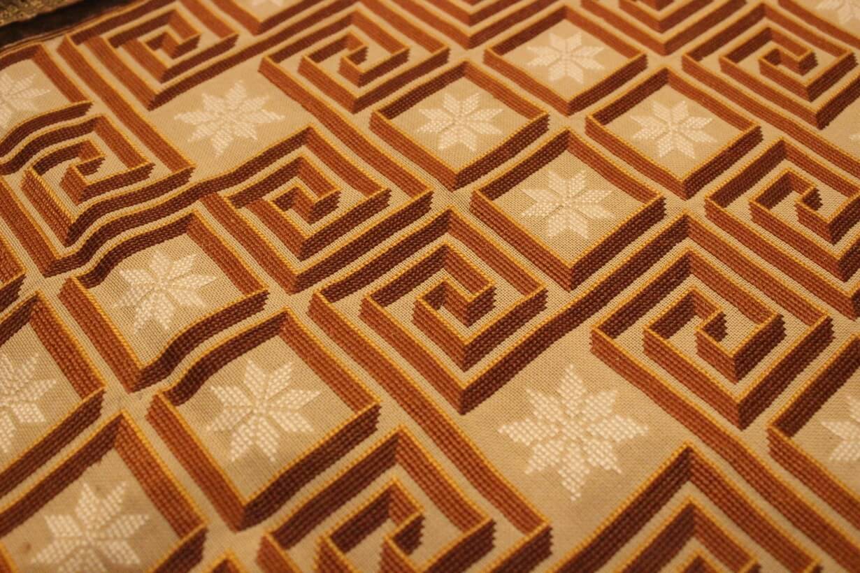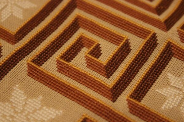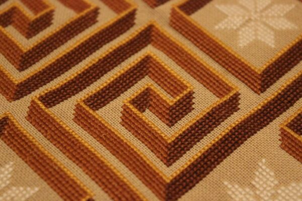 The basic motif is the ancient Greek meander. The design motif was created using a basic pattern and repetition.