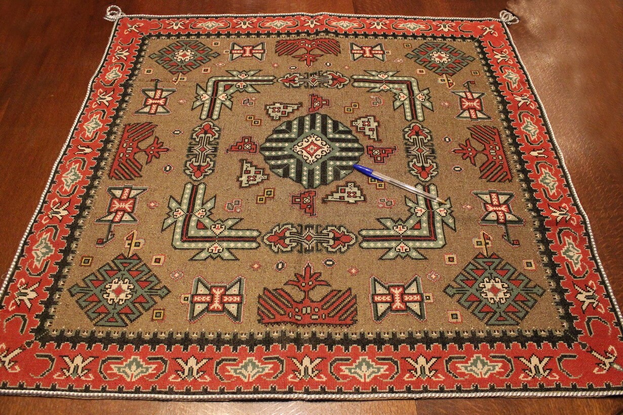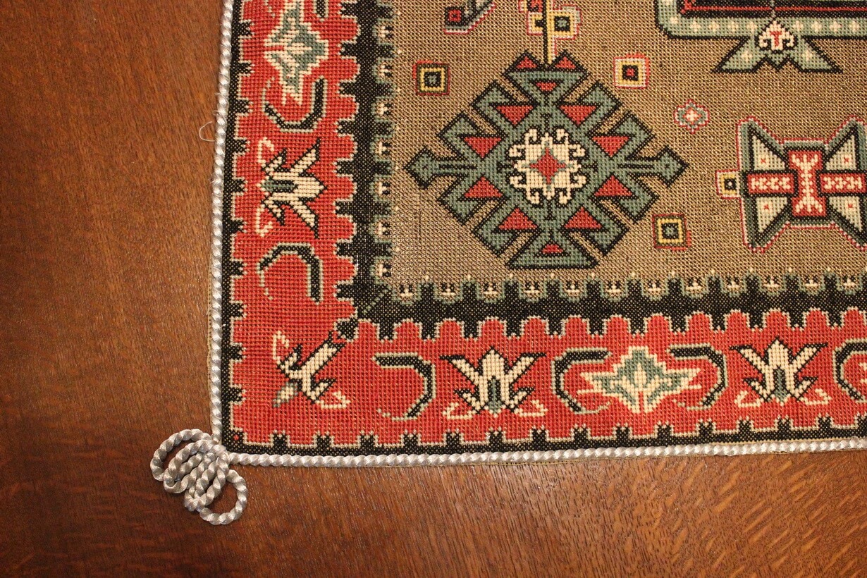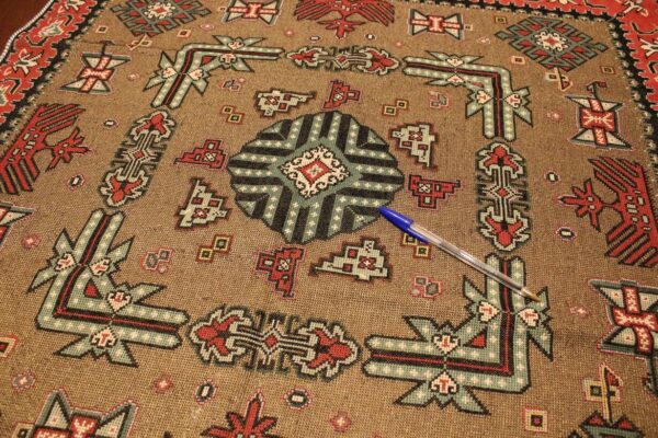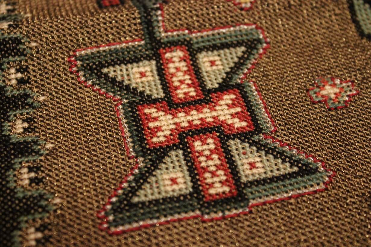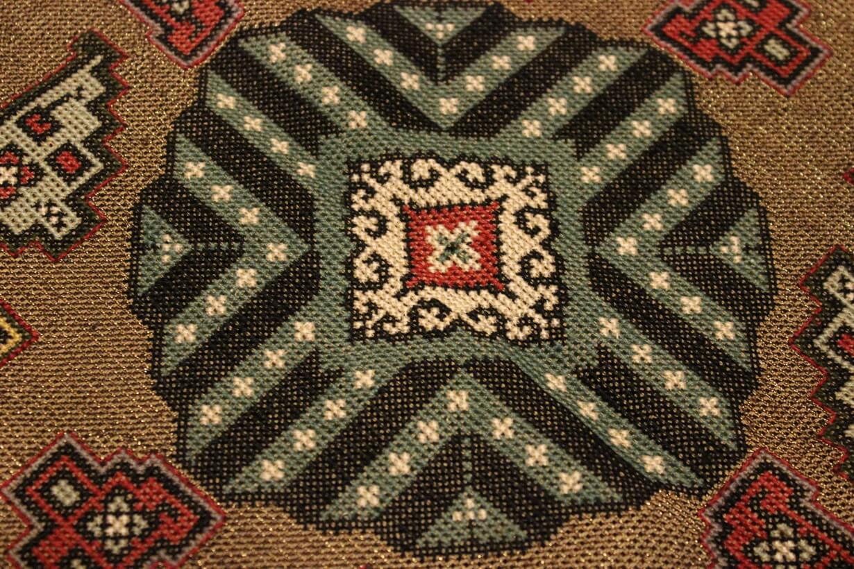 Cross-stitch was used. The filling is dark gold thread.