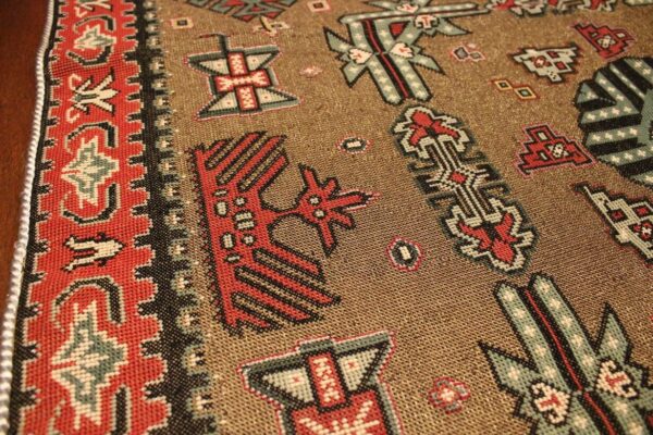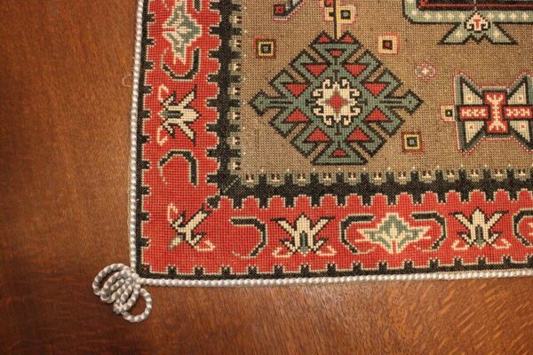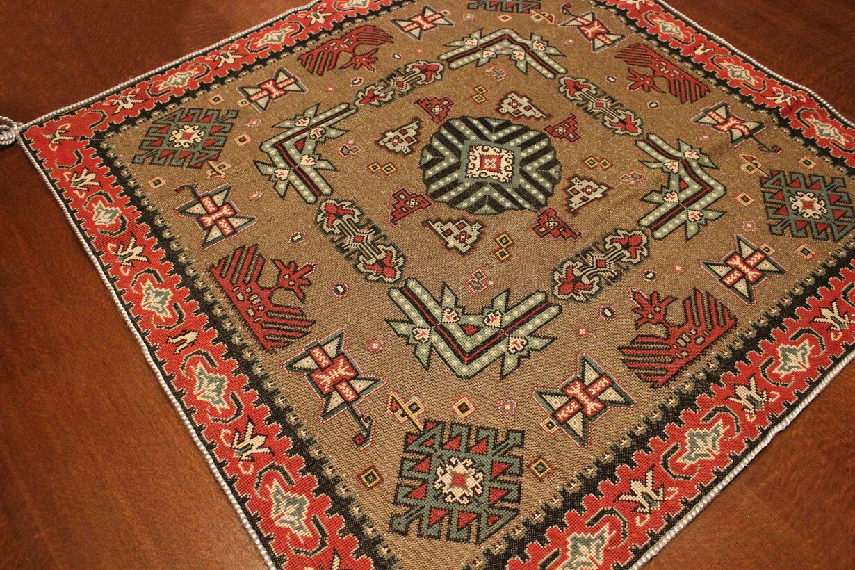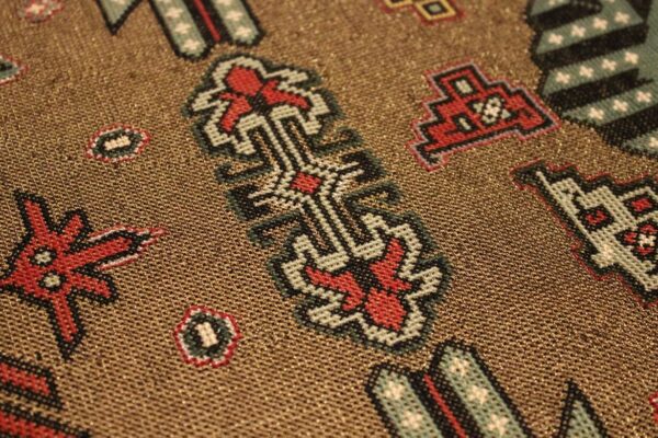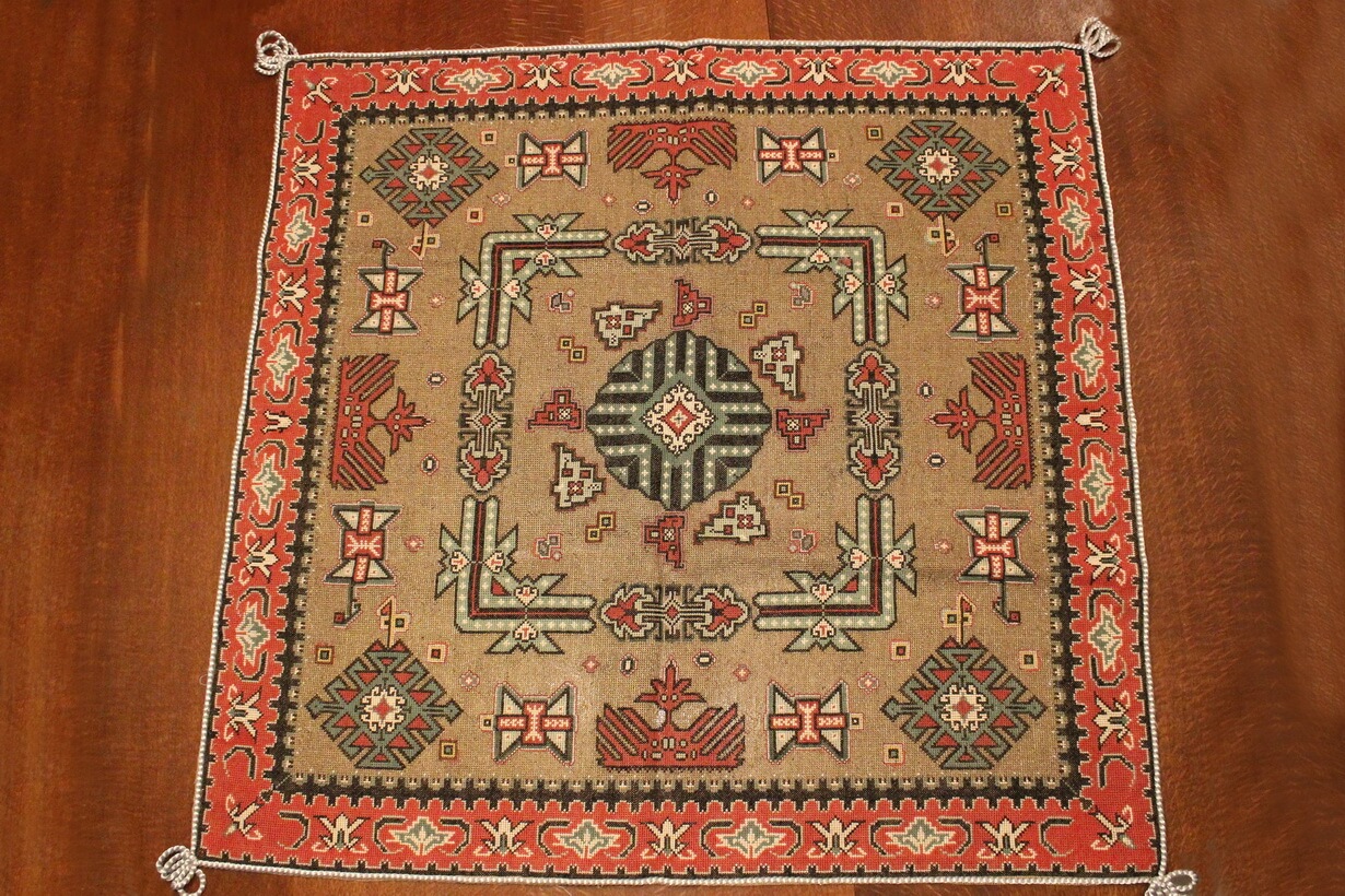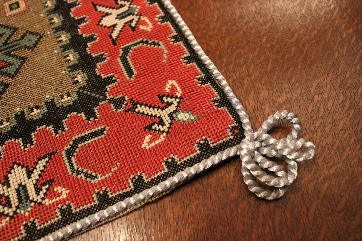 Cross-stitch was used. The filling is dark gold thread.