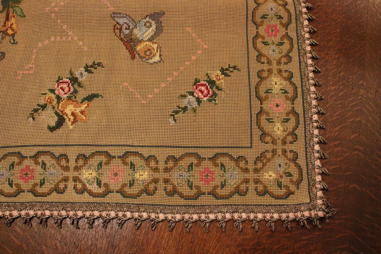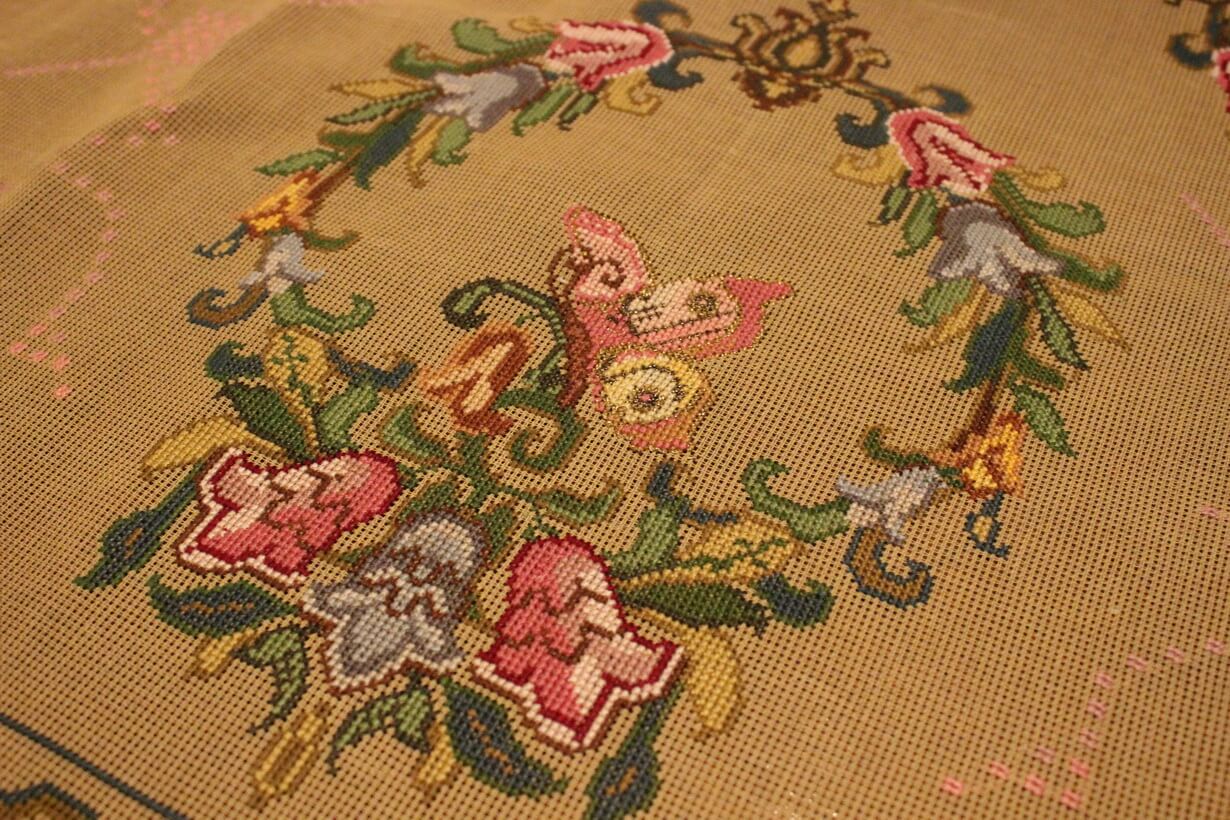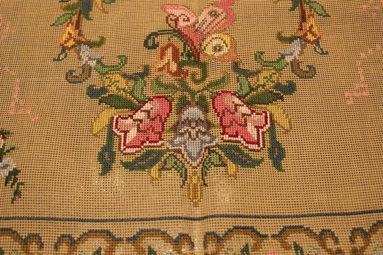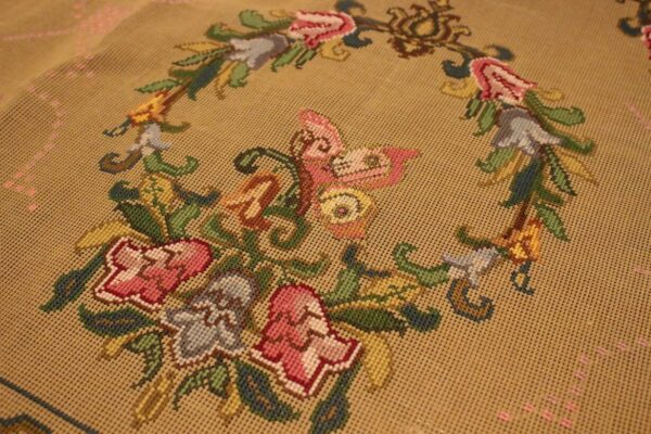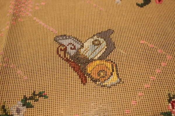 Cross-stitch (using single or double thread) and hand topstitch were used.