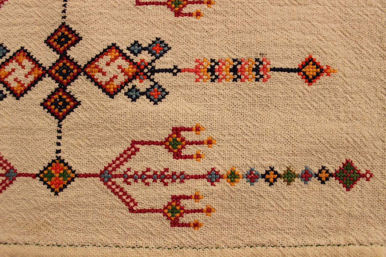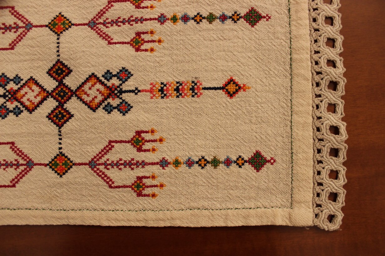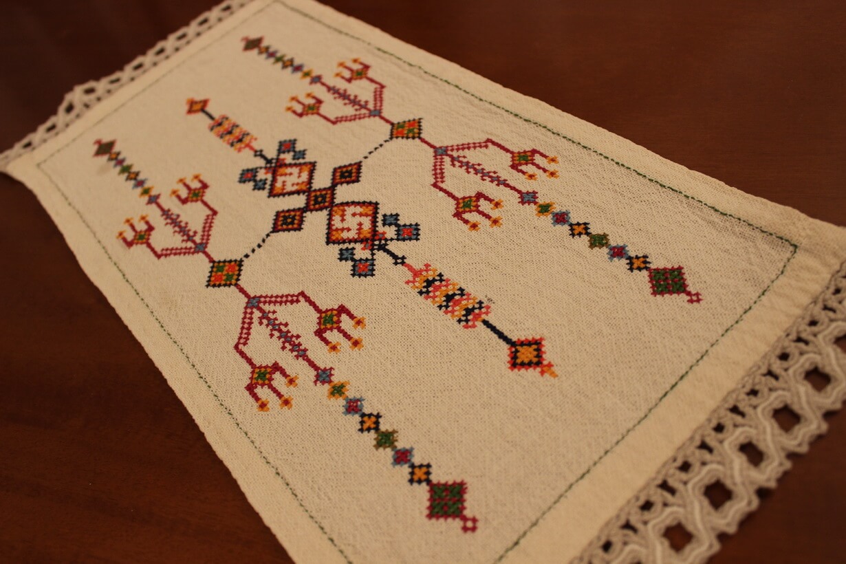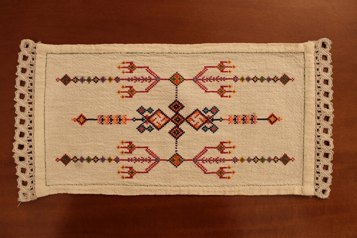 The design motif was created using a basic pattern and repetition. Cross-stitch was used.