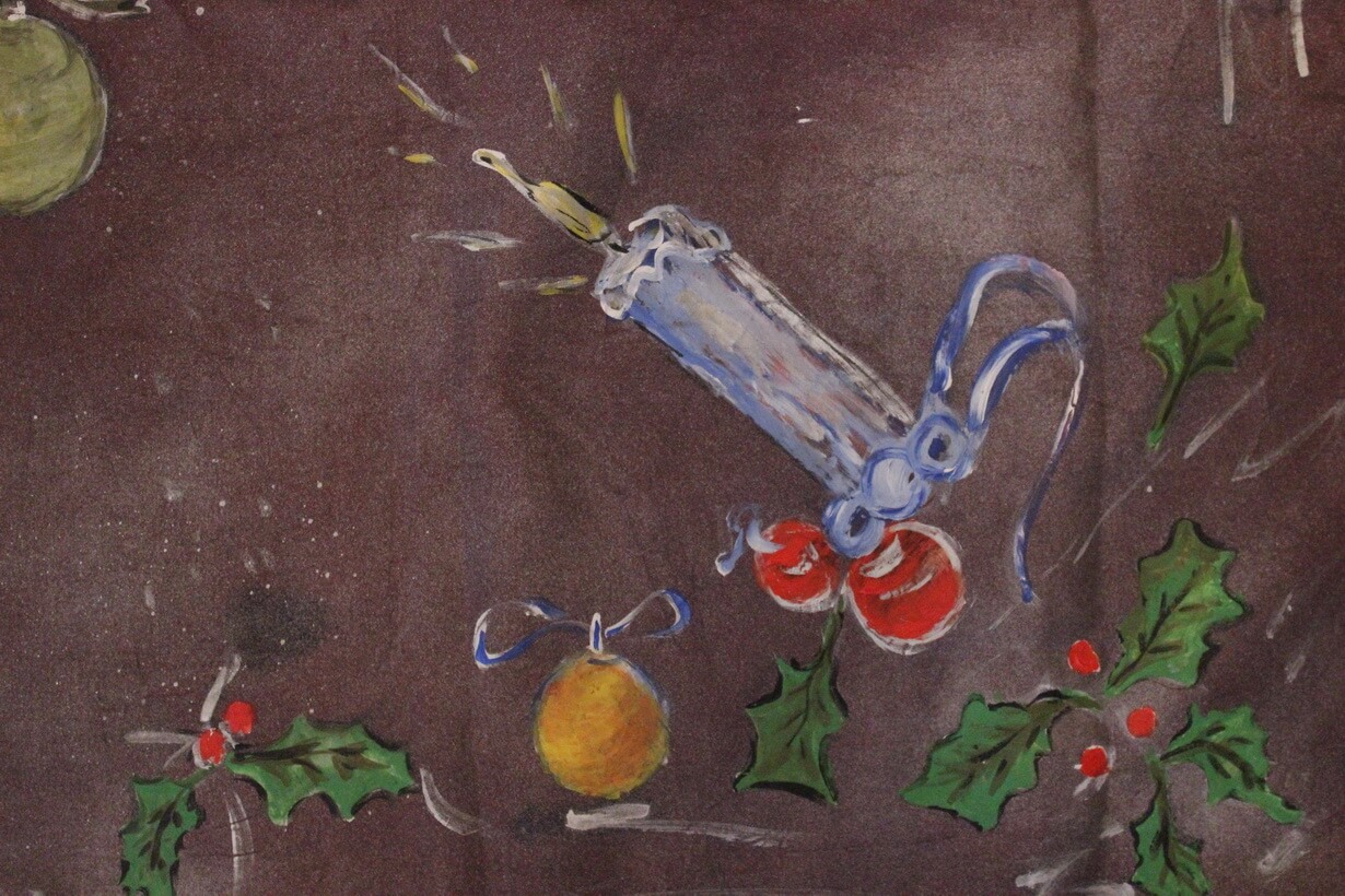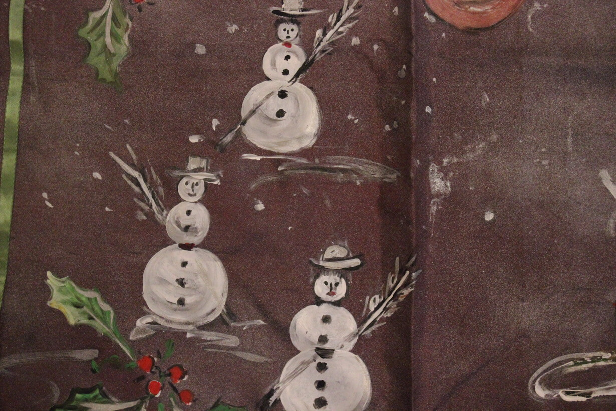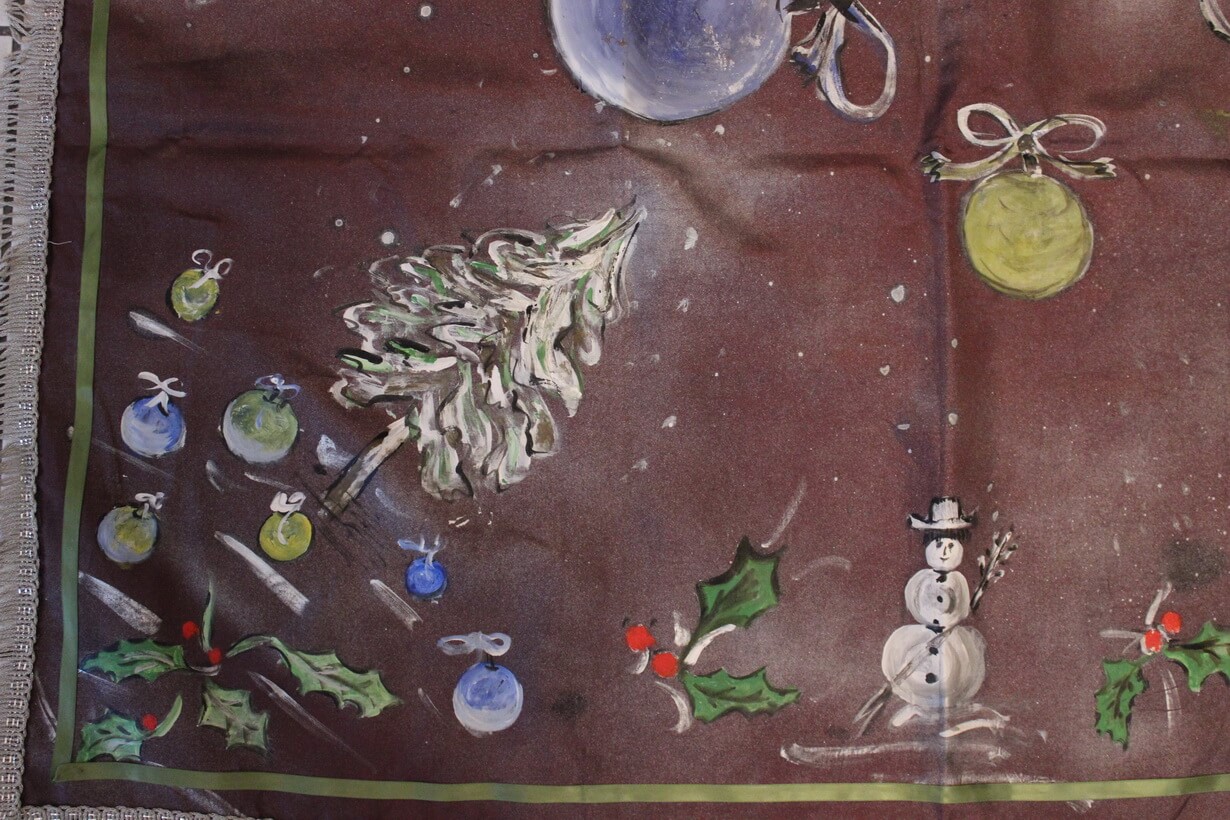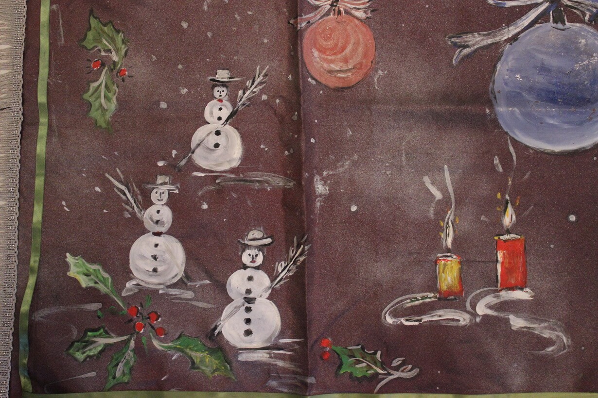 Although this is a Christmas-themed painting rather than an embroidery, it is included here due to its deep psychological significance for the creator, as it was created during a pivotal period in her life. It is intended for use as a Christmas decorative tablecloth.